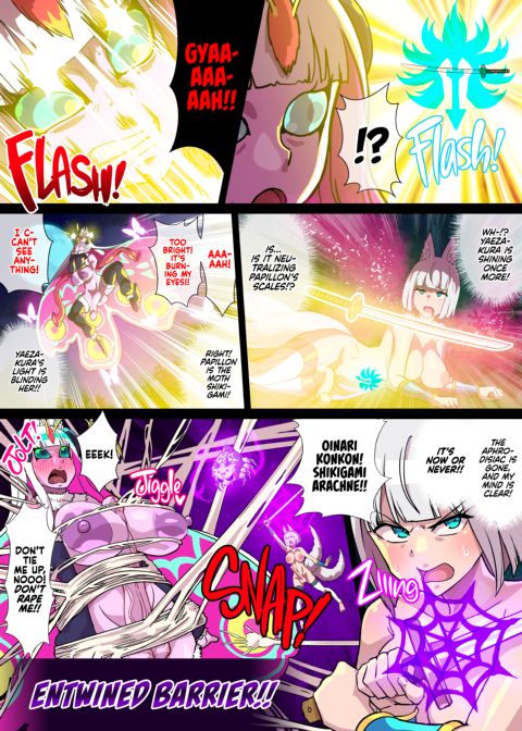 | Description | After defeating the arachne Shiki, the two futanari fox girls get a moment or respite to collect themselves and test out their newfound powers. This soon leads to them getting all touchy, erect and horny. Too late they realize that they are already under attack! The culprit this time is a moth girl kunoichi whose wings spread aphrodisiac dust in copious amounts. With both fox girls already affected, will they be able to resist the temptation or will the moth girl cause them to cum their brains out?? |