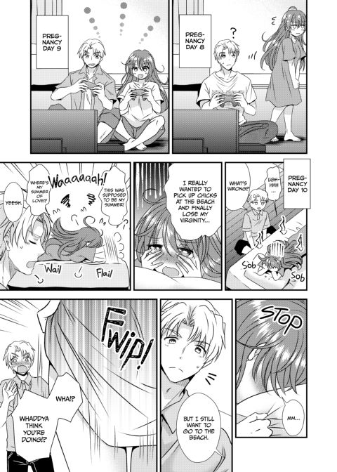 | Description | It's Summer, and Ayumu's finally going to get laid (he thinks), as long as he can get his girl-magnet best friend Ryuji to come with him to the beach to pick up chicks. But when a magical notebook turns Ayumu into a girl, the pair may be in for a much more intimate Summer of Love than they were expecting! But this isn't any old magic notebook — it's a baby book designed to help men like Ayumu experience pregnancy firsthand. As long as he's not pregnant in a month, he'll turn back to normal. Easy, right? ...Right? |