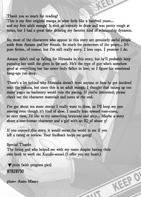 | Description | Amane Shiraishi is the model police officer: she's kind, looks out for the community, and busts her ass every day on the beat. If there's one person who raises her hackles, it's Detective Hirasaka... And little does she know just how right about him her intuition is. |