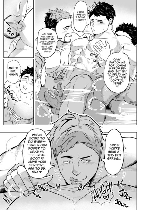 Description Nao's a hiking kinda guy. He enjoys going in groups or by himself. One day, after hiking a big mountain, he spots a hot spring bath. As he's reading about it from outside, a few key words catch his eyes. The bath supposedly helps you have a bigger cock. Nao's always had issues with his own size because he's so small downstairs, so he decides to go on in. No one's inside, so he has the bath to himself, at first. He quickly learns that the hot springs aren't just used for their health benefits—they're also a gay cruising spot!